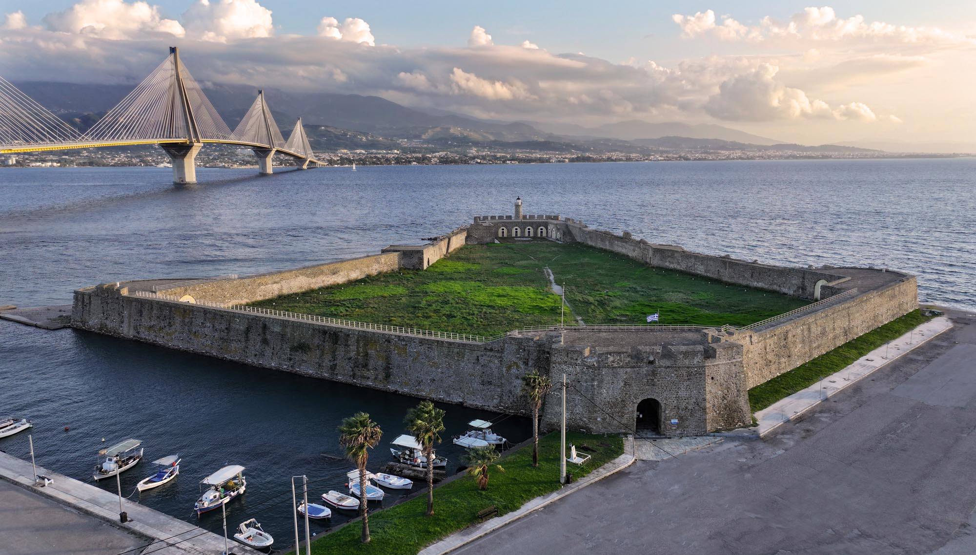 Το φρούριο του Αντιρρίου κτίστηκε από τον σουλτάνο Βαγιαζήτ Β΄ στο ομώνυμο ακρωτήριο για να ελέγχει και να επιτηρεί, μαζί με το φρούριο του Ρίου, το στενό θαλάσσιο πέρασμα ανάμεσα στην Πελοπόννησο και τη Στερεά Ελλάδα. Τα δύο φρούρια ήταν γνωστά στους βενετούς ως Castello di Rumelia -Καστέλλι της Ρούμελης (το Αντίρριο)- και Castello della Morea -Καστέλλι του Μορέα (το Ρίο).