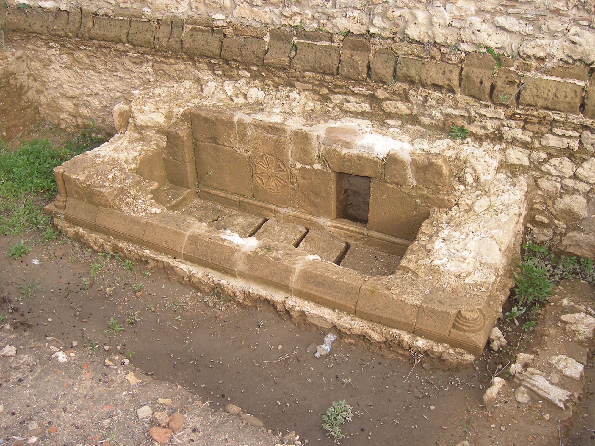 Τέλος, κοντά στο διατείχισμα που χώριζε το βούργο από το εμπορείο και το λιμάνι, διατηρούνται ερείπια δύο ακόμη κτηρίων: ένα διώροφο σε σχήμα Γ με κτιστή μνημειακή κλίμακα στα νότια, που παραμένει αταύτιστο, και άλλο ένα με τρεις αίθουσες, που ερμηνεύεται πιθανόν ως οθωμανικό λουτρό.