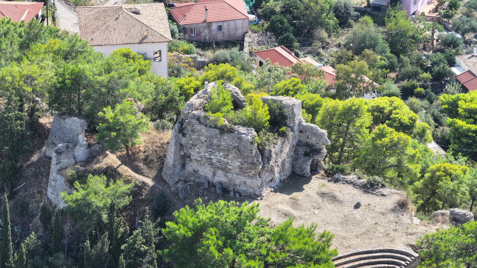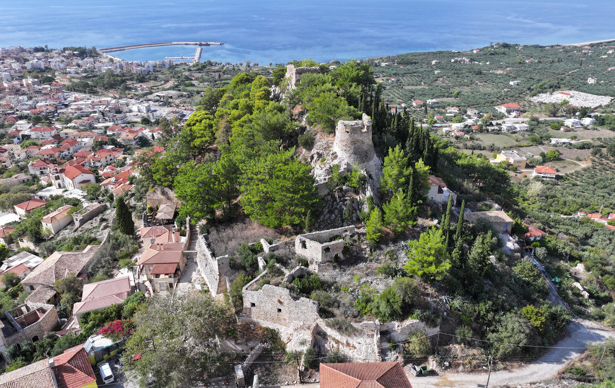 Από το κάστρο που πολιορκήθηκε από τους Φράγκους ιππότες της Δ΄ Σταυροφορίας, διατηρείται σήμερα, σύμφωνα με τους μελετητές, υπόγεια, μη επισκέψιμη, κινστέρνα στο μέσο περίπου της βορειοδυτικής πλευράς του εσωτερικού περιβόλου, όπως και η αρχική οικοδομική φάση του πεταλόσχημου πύργου/προμαχώνα της βορειοανατολικής γωνίας του εσωτερικού περιβόλου. Ο προμαχώνας αυτός, γνωστός ως «Πύργος του Ιουστινιανού» ή ως «μικρή ντάπια», είχε ως κύριο σκοπό την προφύλαξη της ιδιαίτερα ευπρόσβλητης ανατολικής πλευράς του κάστρου, αλλά και της πύλης που οδηγούσε στον οικισμό. Η μετατροπή του σε προμαχώνα χρονολογείται στον 15ο ή τον 16ο αιώνα, ενώ φαίνεται ότι κατά την περίοδο της οθωμανοκρατίας ενισχύθηκε η άνω στάθμη του.