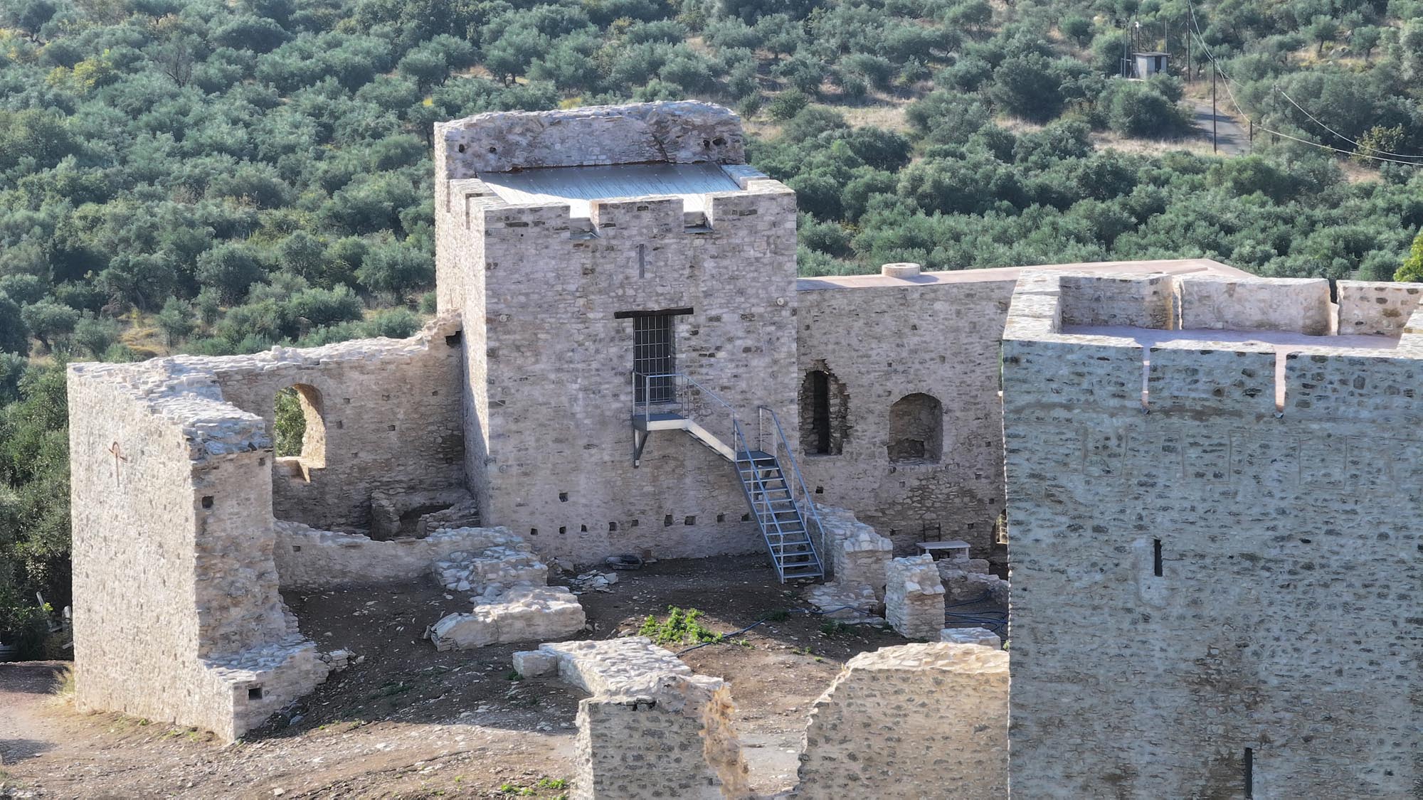 Ο όροφος της νότιας πτέρυγας αποτελείται από δύο ευρύχωρες ξυλόστεγες αίθουσες διημέρευσης, που φωτίζονται από τοξωτά παράθυρα. Η μεγαλύτερη αίθουσα από τις δύο διαθέτει μεγάλο τζάκι και αποχωρητήριο. Στην ίδια πτέρυγα, οι αντίστοιχοι χώροι του ισογείου είχαν πιθανώς αμυντική και αποθηκευτική χρήση. Στη νοτιοανατολική γωνία του περιβόλου, σε επαφή με τον ανατολικό πύργο, υπήρχε μεγάλο ορθογώνιο ξυλόστεγο παρεκκλήσιο.