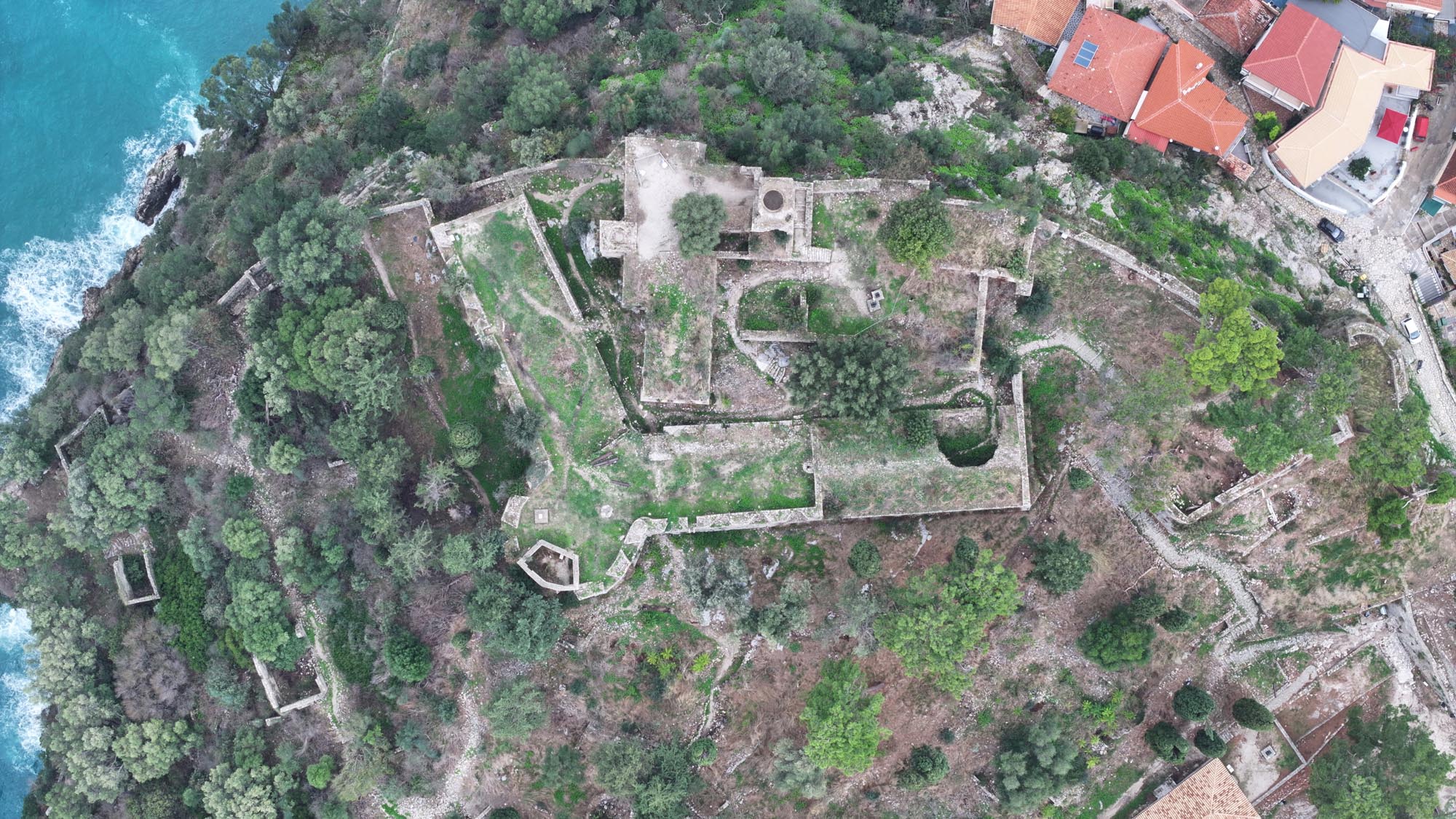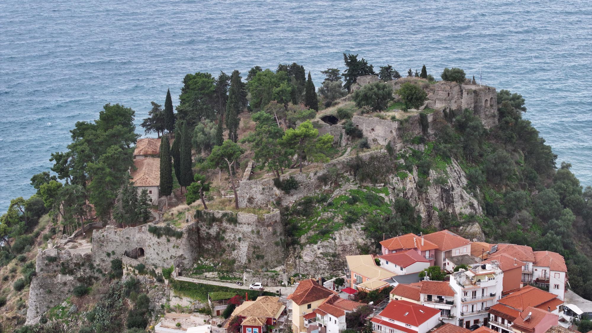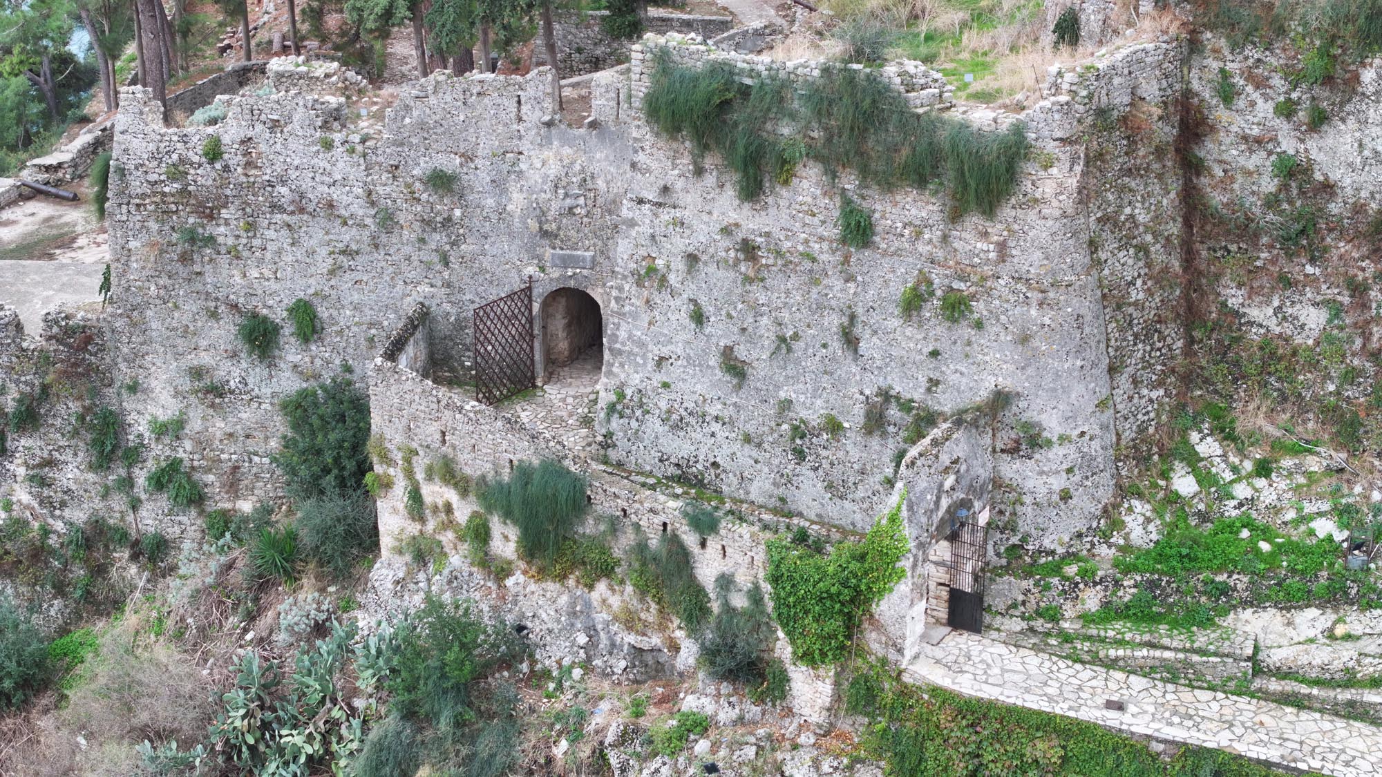 Η πύλη της ακρόπολης, μνημειακά διαμορφωμένη, φέρει εκατέρωθεν δύο ορθογώνια πλαίσια με δικέφαλο αετό και επιγραφές με τη χρονολογία 1820 και το όνομα του Αλή Πασά. Στο εσωτερικό του τείχους, που διαχωρίζει την ακρόπολη από το κάστρο, αναπτύσσονται δύο πτέρυγες καμαροσκέπαστων ημιυπόγειων χώρων. Προορίζονταν για τη φρουρά, όπως φαίνεται από τις κόγχες τζακιών που διατηρούν, και για την αποθήκευση των απαραίτητων υλικών για τη λειτουργία του οχυρού. Στοά διατρέχει και τις δύο πτέρυγες για την επικοινωνία με τον γωνιακό ισχυρό προμαχώνα και το εσωτερικό της ακρόπολης, εξασφαλίζοντας τη μετακίνηση των στρατιωτών. Στο υψηλότερο σημείο της ακρόπολης είναι κτισμένο ένα μεγάλο διώροφο συγκρότημα, το σεράι του Αλή Πασά, που περιλαμβάνει χώρους κατοικίας, δεξαμενές, μικρό λουτρό (χαμάμ) και τέμενος.
