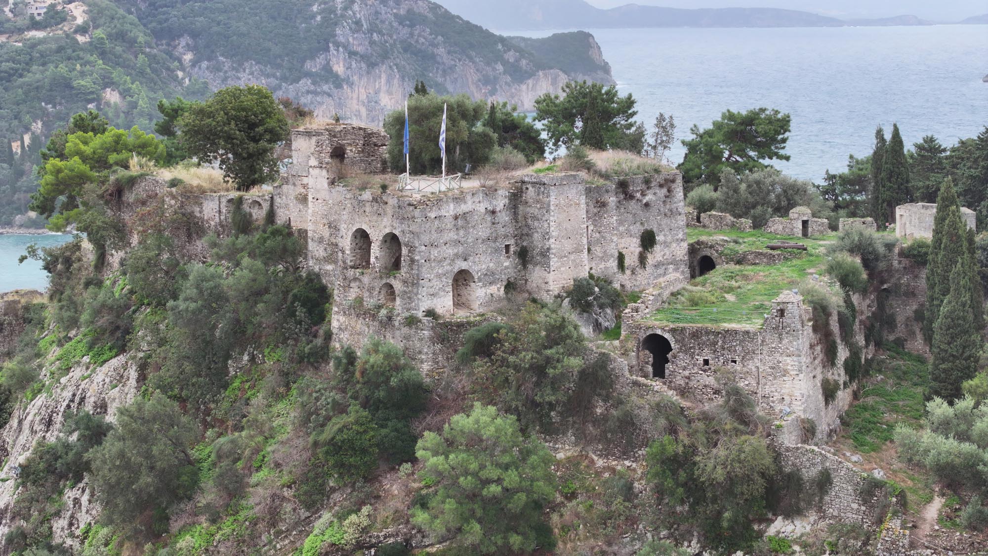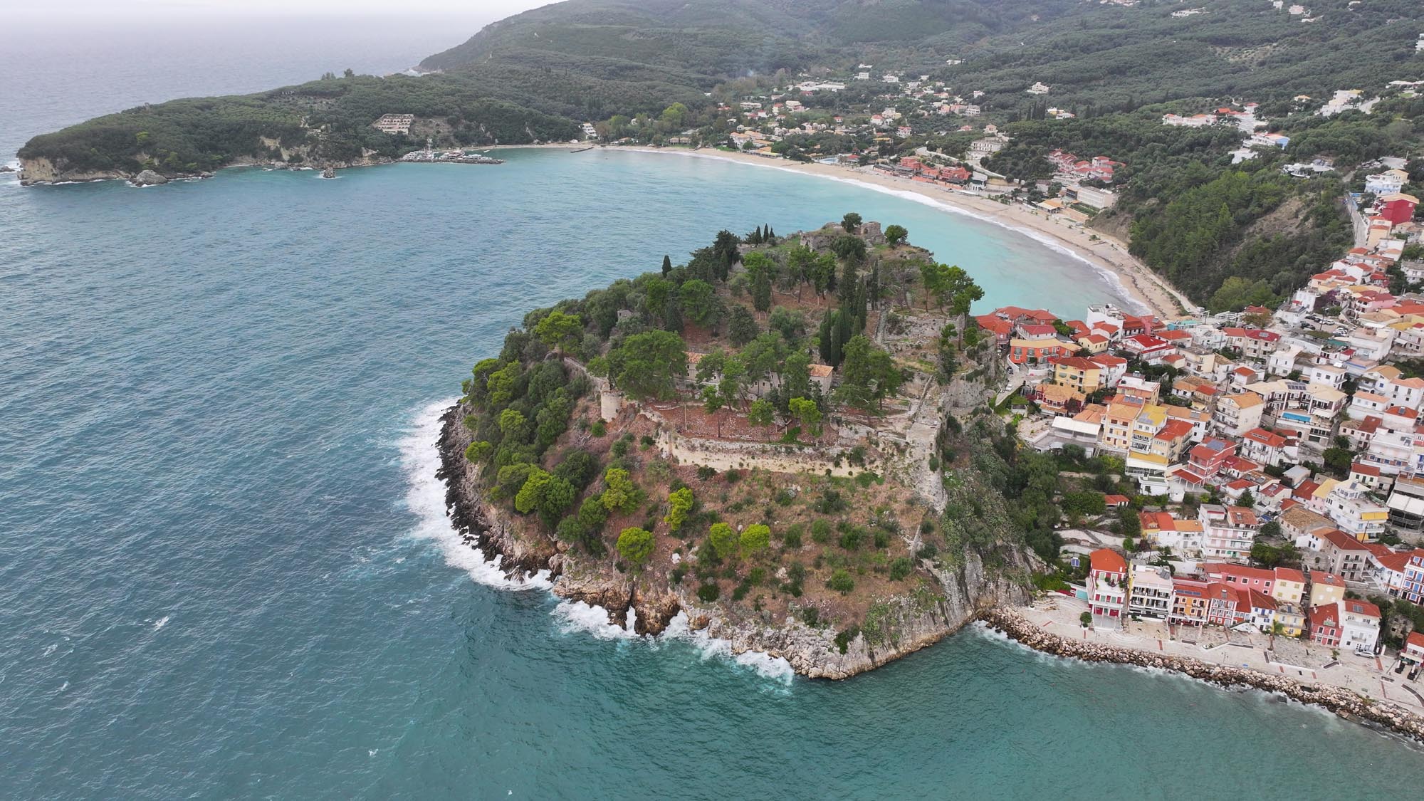 Ανηφορικό μονοπάτι οδηγεί στην πύλη, στα νοτιοανατολικά της οχύρωσης. Η άμυνα σε αυτό το προσβάσιμο και επομένως ευάλωτο τμήμα του κάστρου ενισχύεται με ημικυκλικό πύργο-προμαχώνα. Πάνω από το τόξο της πύλης σώζεται εντοιχισμένη επιγραφή στην οποία αναγράφεται το έτος 1707 και το όνομα του διοικητή της Πάργας Μάρκου Θεοτόκη. Δεύτερη πύλη οδηγεί στο εσωτερικό του κάστρου μέσα από στενή καμαροσκέπαστη δίοδο. Επάνω από αυτή την πύλη, δυσανάγνωστη επιγραφή αναφέρεται στην εξάρτηση της Πάργας από την Κέρκυρα. Λίγο ψηλότερα σώζεται εντοιχισμένο ανάγλυφο με το έμβλημα της Βενετίας, τον φτερωτό λέοντα του Αγίου Μάρκου.