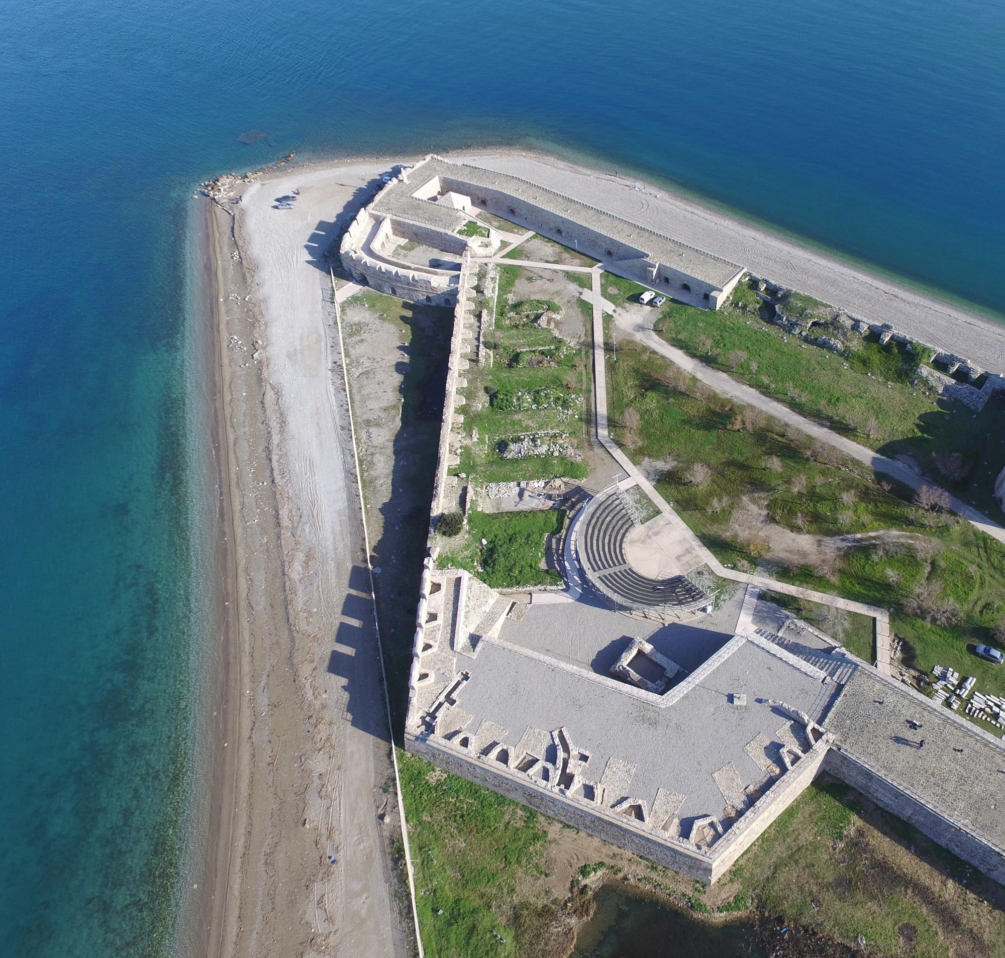 Το φρούριο των οθωμανικών χρόνων ήταν μικρό σε έκταση. Είχε κάτοψη τραπεζίου, με τη μικρή πλευρά προς βορρά, η οποία αποτελείται από συγκρότημα τριών συνεχόμενων («τρίδυμων») κυκλικών πύργων. Αντίστοιχα, στην απέναντι πλευρά του τραπεζίου, στο μέσο περίπου του νότιου τείχους ορθώνονται δύο συνεχόμενοι («δίδυμοι») κυκλικοί πύργοι. Δύο ακόμη πύργοι σχηματίζονται στα άκρα του νότιου τείχους, ένας τριγωνικός στα ανατολικά και ένας κυκλικός στα δυτικά, ενώ στην πλευρά αυτή, όπου βρισκόταν και η είσοδος του φρουρίου, η οχύρωση ενισχυόταν και με πλατιά ένυδρη τάφρο. Από τις δύο άλλες, μακρές πλευρές της οθωμανικής οχύρωσης διατηρείται μόνο η ανατολική, ενώ η δυτική κατεδαφίστηκε στα χρόνια της βενετοκρατίας κατά τις εργασίες επέκτασης του φρουρίου.